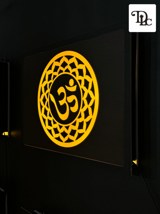 DLC - Illuminated Om Symbol Wall Art with Intricate Mandala Design